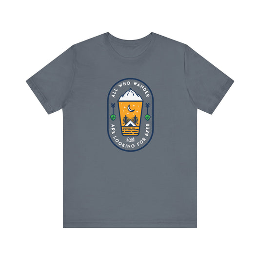 All Who Wander Are Looking For Beer Unisex Jersey Short Sleeve Tee