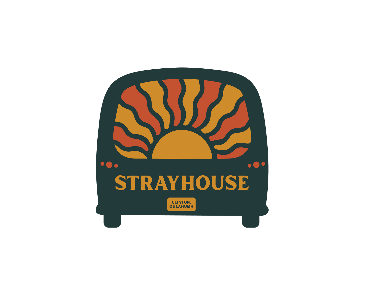 With the motto, "Stray Awhile.", what used to be a mobile coffee trailer is now a vibrant coffee house and restaurant in Clinton, OK. We combined their origins of a mobile coffee trailer with iconic sunsets in western Oklahoma.