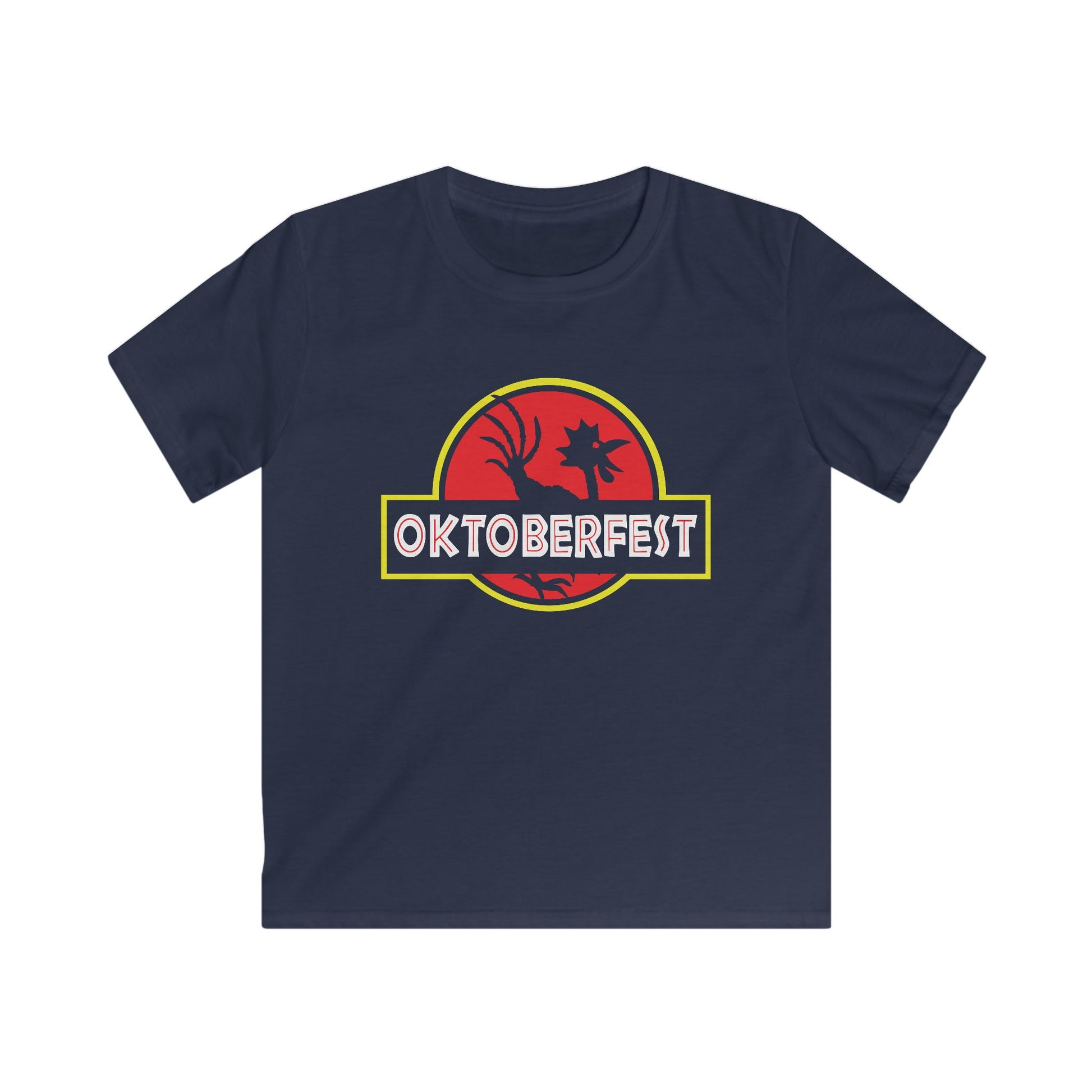 Oktoberfest Park Kids Softstyle Tee - Dinosaur T-Shirt for Young, Festival Shirt, Oktoberfest Chicken Shirt, Funny Shirt